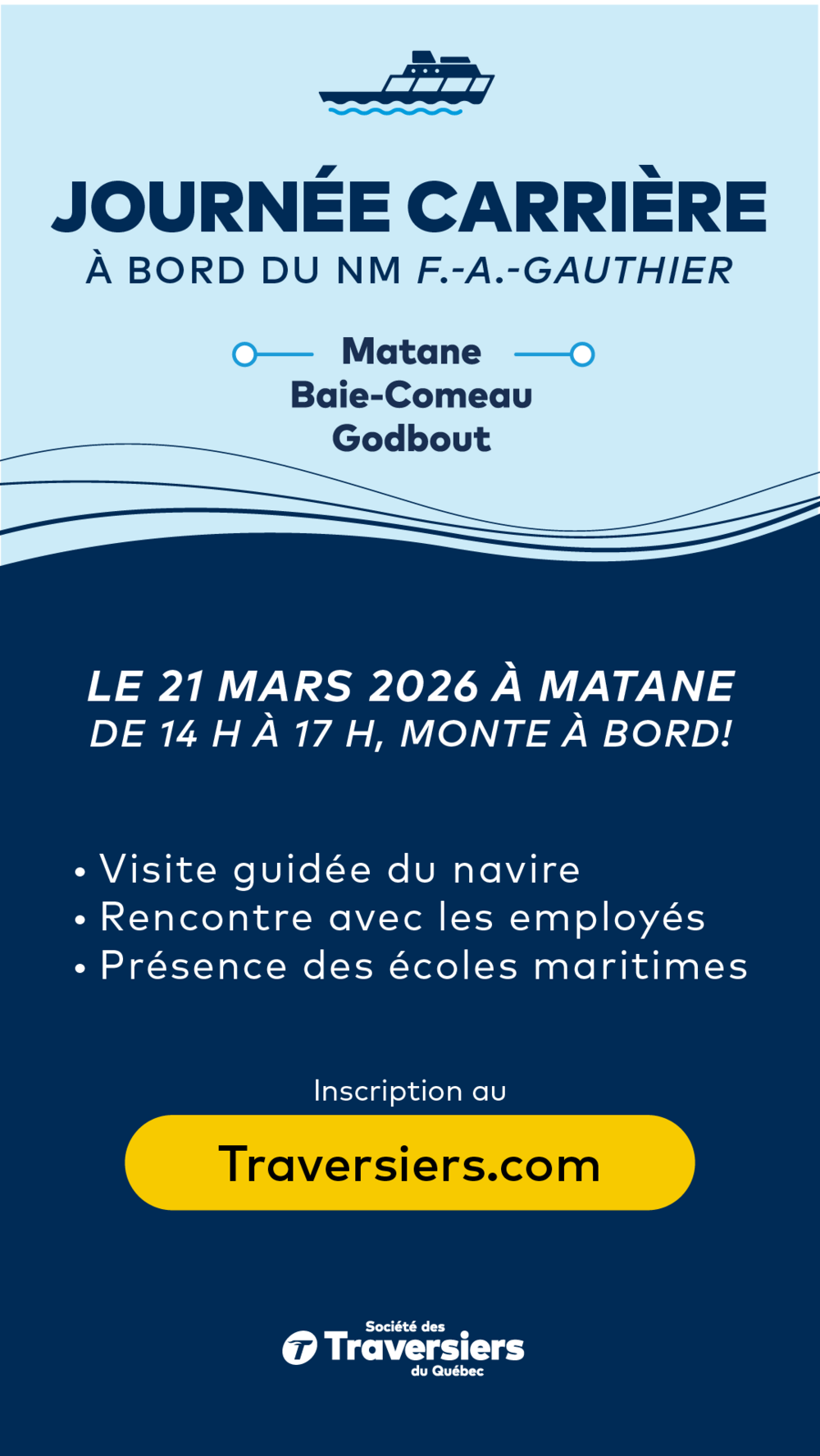 Découvrez vos futur(e)s collègues le 21 mars à bord du navire à Matane!
