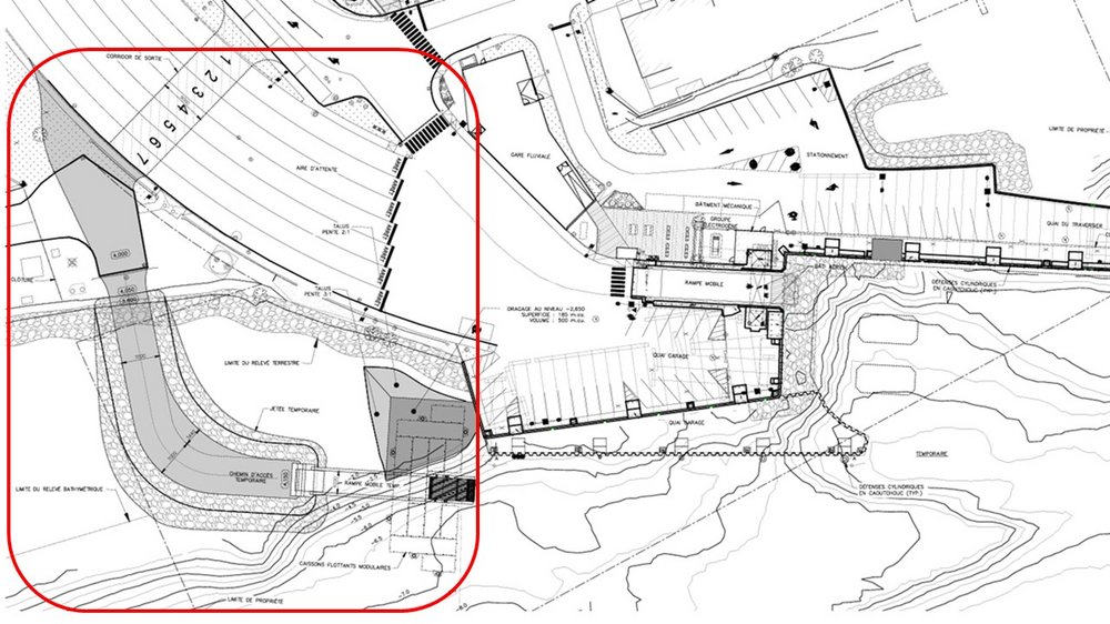 Le projet prévoit la mise en place d’installations et dispositifs temporaires adaptés aux besoins opérationnels des traversiers.