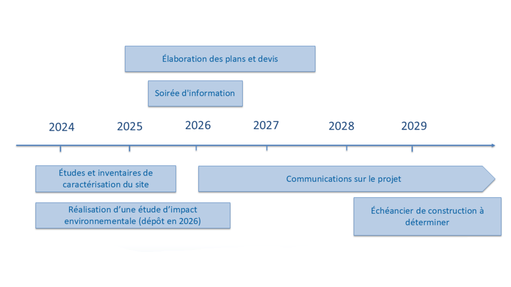 L’échéancier de construction sera établi une fois toutes les autorisations obtenues. À ce jour, le début des travaux est estimé pour 2029.